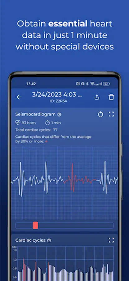 • Length of each recorded cardiac cycle, which makes it possible to use the app as an hrv monitor.