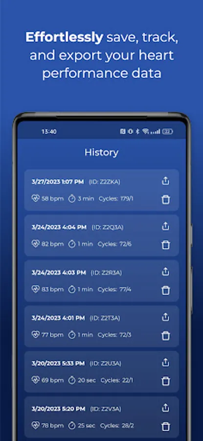 HeartScan also offers the ability to export your measurement results in a convenient PDF format. This feature enables easy sharing of your data with healthcare professionals and provides a flexible way to track your progress. Maintain a digital record of your heart health journey and access your important data whenever you need it.