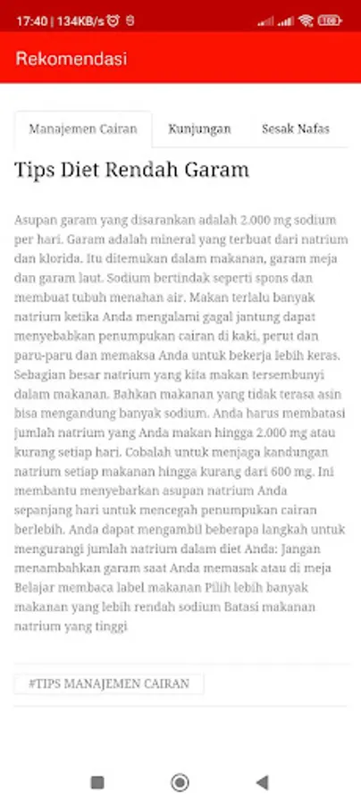 The Heart Failure Self-Care Application or abbreviated as ATRIA is a self-care tool for patients with heart failure. ATRIA has various features that can be used by heart failure patients to control self-care at home. These features include: