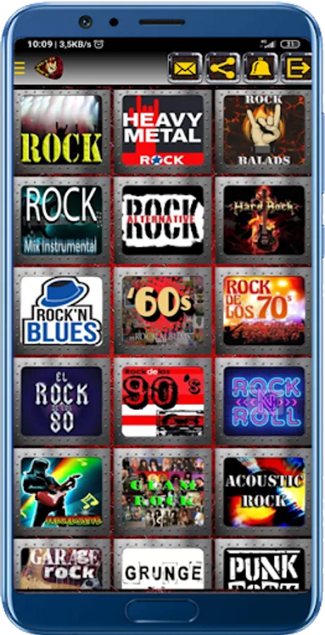 Rock Music, Rock Heavy Metal, Rock Ballads, Rock Instrumental, Alternative Rock, Hard Rock, Blues Rock, Rock of the 60s, Rock of the 70s, Rock of the 80s, Rock of the 90s, Rock And Roll, Progressive Rock, Glam Rock, Acoustic Rock, Garage Rock, Grunge, Punk Rock, Country Rock, Acoustic Rock, Indie Rock, Kraut Rock, Stoner Rock, Melodic Rock and Surf Rock, Psychedelic Rock, Gothic Rock, Acid Rock, Roots Rock...and any other you want to add.