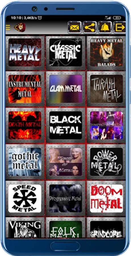 Heavy Metal Ballads, Heavy Metal, Melodic Heavy Metal, Classic Metal, Instrumental, Glam Metal, Thrash Metal, Death Metal, Melodic Death Metal, Black Metal, Melodic Black Metal, Symphonic Metal, Gothic Metal, Women of Metal, Power Metal, Melodic Power Metal, New Symphonic Power Metal, Speed โโMetal, Progressive Metal, Doom Metal, Viking Metal, Folk Metal, Grindcore, Alternative Metal, Metalcore, Nu Metal, Industrial Metal, Groove Metal, Neo Classical Metal, DeathCore, Slamming Brutal Death Metal, Electro Metal, New British Heavy Metal, Dark Metal, Celtic Metal, Alternative Metal, Math Metal, Sludge Metal, Post Metal, Pagan Metal... and any other you want to add.