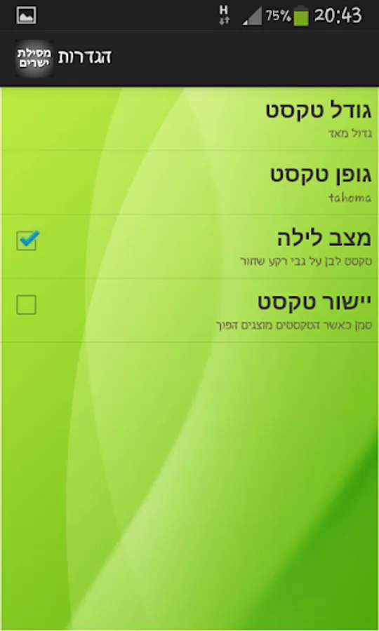 * Normal mode (black text on a white background) and night mode (white text on black background for easy readability and healthier than dark).