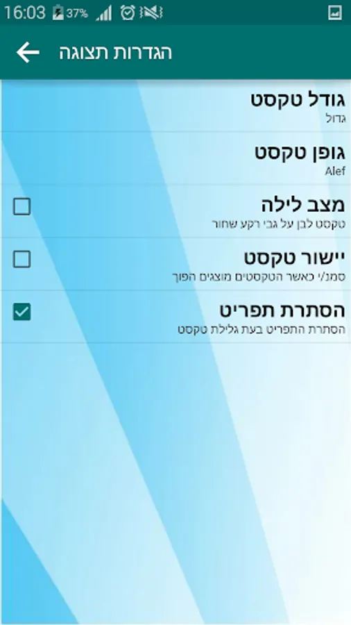 - Normal mode (black text on a white background) and night mode (white text on a black background).