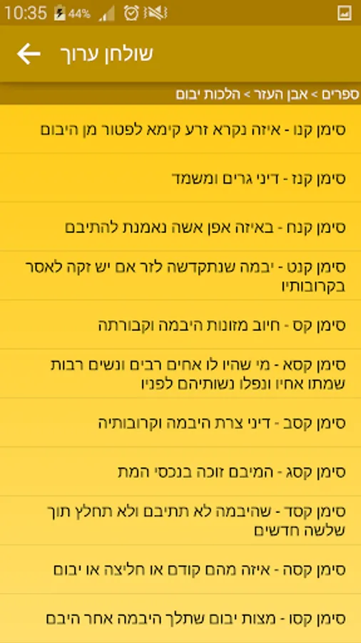 Yore Deah - the laws of slaughtering ban and others, the laws of kashrut, the laws of Nida, interest laws, the laws of vows, the commandments dependent country can be fulfilled even while in exile, seeds, and other laws of mourning.