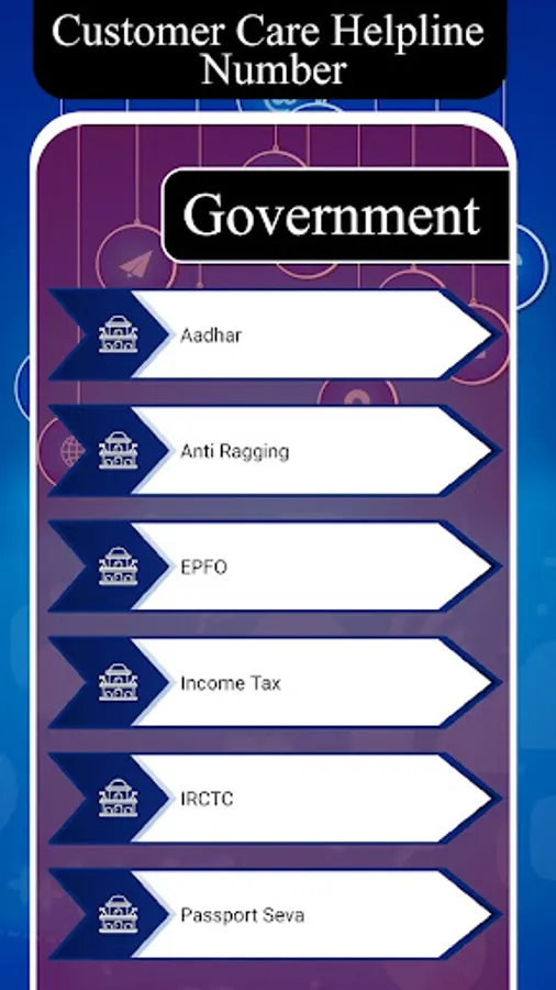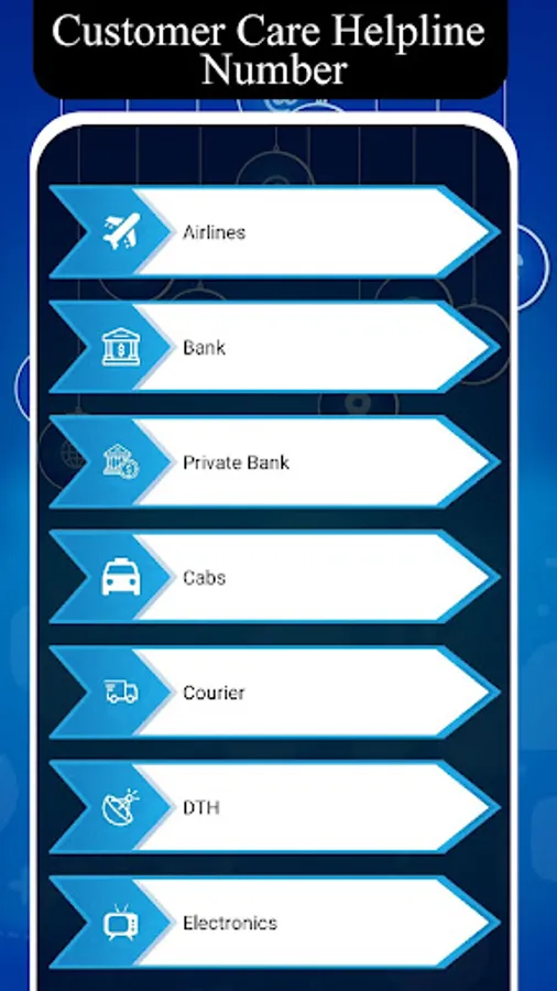 Customer Care Helpline Number - TollFree are well categorized in this app. Those categories are Airlines, Bank, Cabs, Courier Services, DTH, Electronics, Emergency, Food Delivery, Gas Provider, Government, Internet Provider, Hospital, Payment App, Mobile, Shopping and Travel.