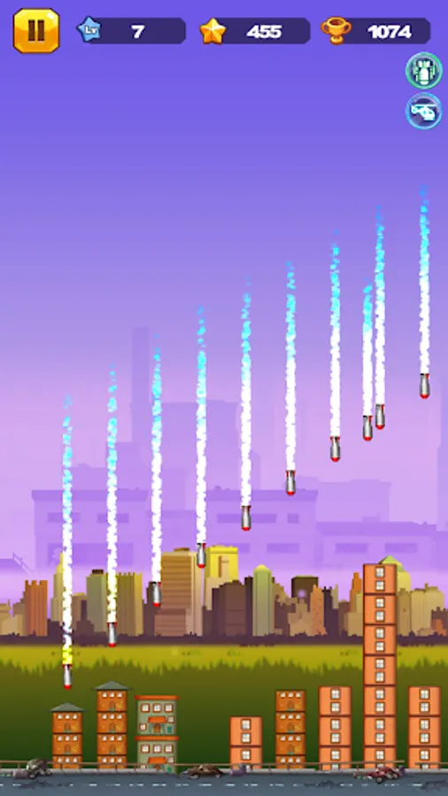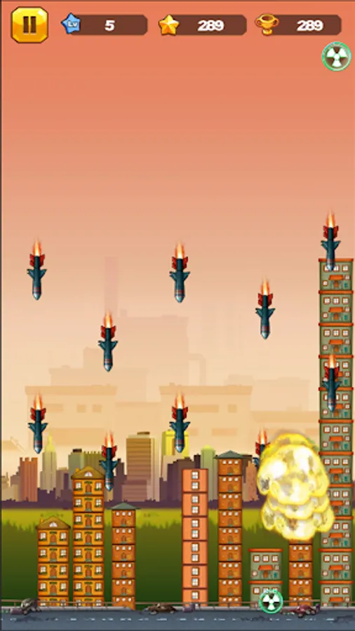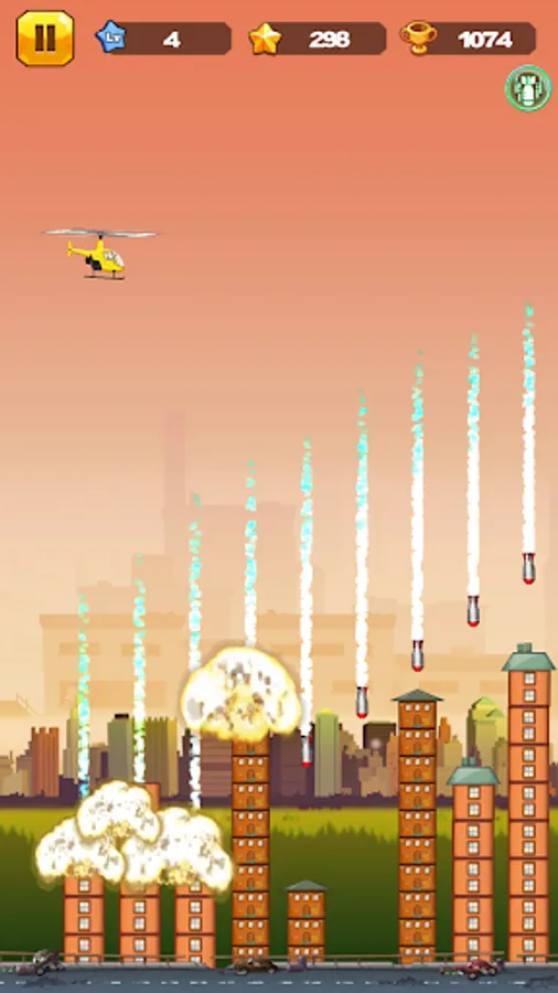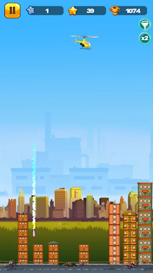 - Touch any where on screen to drop bombs and clear buildings before you hit them.