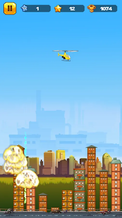 In the game. Player will control 1 helicopter to drop bombs at the building below in city, you have to plan where to drop the bomb or you'll hit them soon!