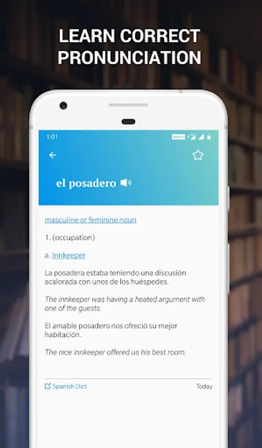 Explore new challenging words each day. You can save the most difficult words to study separately from the ones added daily. If you need to expand your Spanish vocabulary, get this app. A single word can have different meanings. So, we give you all. By clicking on the word, you can get the complete meaning of the word with pronunciation.