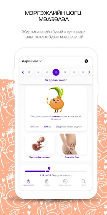 Using the application, you can get detailed information about your pregnancy, advice on common symptoms for pregnant women, answers to hundreds of questions that you want to ask your doctor, antenatal care and examinations. You will also learn how your little one is growing during the week, "as if it were inside," and understand the changes that are taking place in your body.