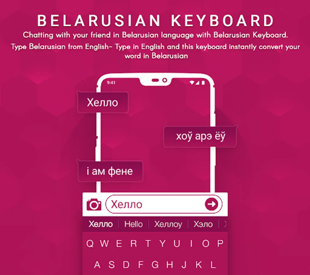 Belarusian keyboard works as default keyboard in android phones/tablets for typing/texting in belarusian. Just type in English and press spacebar your English word will be converted into Belarusian script automatically.