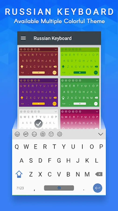Russian keyboard is designed in different beautiful themes; select your own theme that catches your eye. Now you can chat on social media Its easy to use and not necessary to change keyboard setting of keyboard.