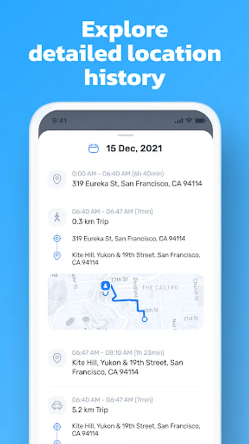 - Сheck location of your family in real-time and view the list of visited places during the day.