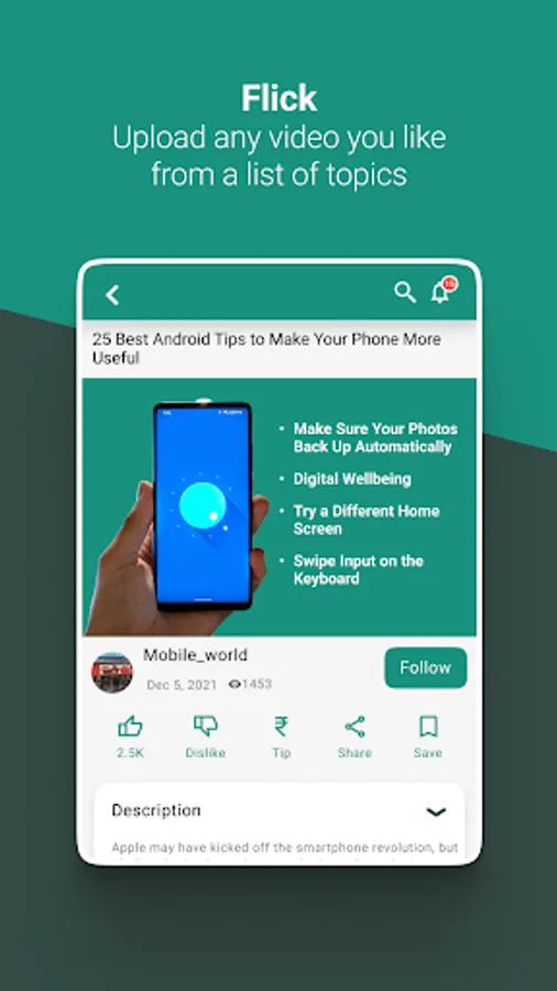 👀 Flick: post videos under topics like repair videos, tips & tricks, device care, app suggestions, accessories etc. that promote your skill, expertise and gives you a chance to go viral.