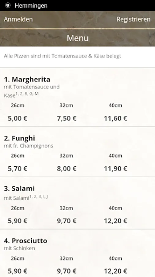 Order different pizzas and other delicious dishes with this application or at https://www.pinocchio-arnum.de/!