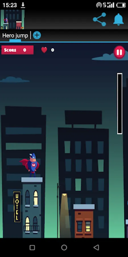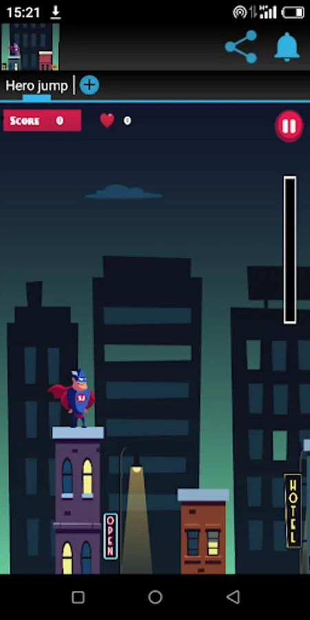 At the beginning we accept the privacy policy and we enter an arbitrary name to save the score that will be reached, we adapt the sound parameters and we start the adventure by clicking a click more or less long according to the distance which separates the buildings either in length or height...otherwise the player plunges into the void and the game closes...have a good adventure with this great game...!