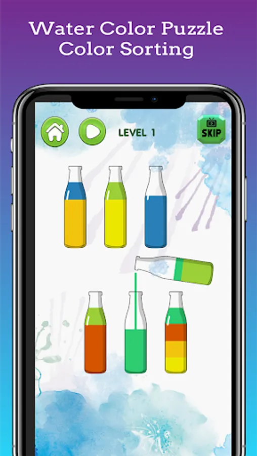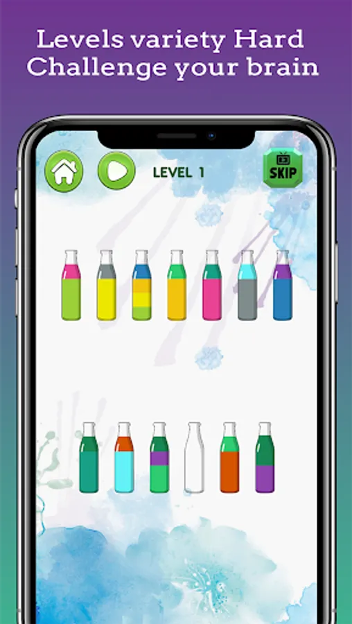 - Puzzle game: Use your brain with logic, imagination and creative to find out how sorting color water go to bottle with same color complete the missions.