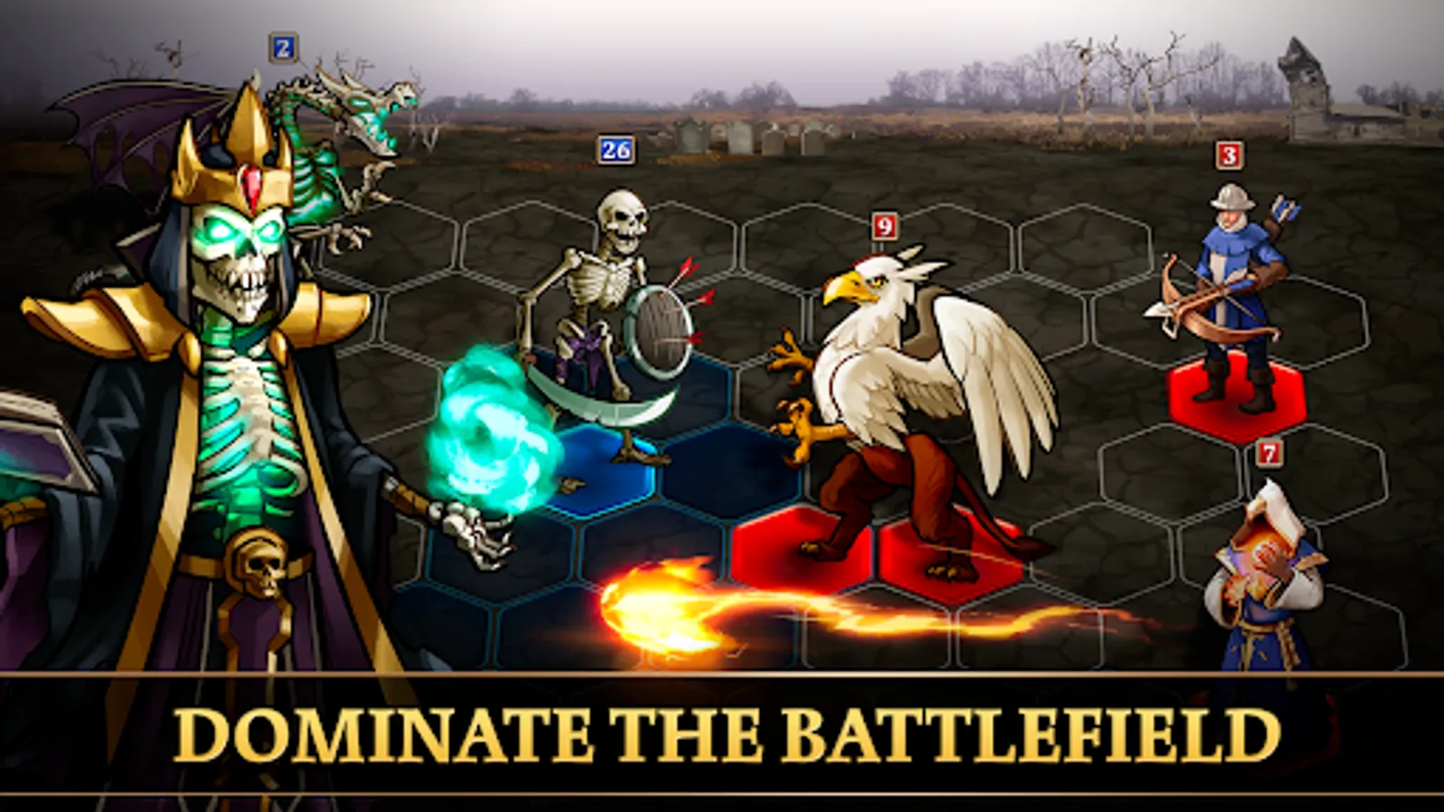 Collect heroes, obtain mythic units like medusa or beholder and explore new worlds. You play as a Lich king - a powerful necromancer and your undead army rise day by day. Play epic heroes and magic and duel other players in epic turn-based strategy battles.