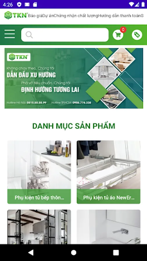 Phụ kiện tủ bếp: gồm bản lề tủ bếp Grass, ngăn kéo tủ bếp Grass, Ray trượt tủ bếp Grass, tay nâng tủ bếp Grass, hệ thống Tavinea Sorto, giá dao thớt kệ gia vị NewEra, giá bát nâng hạ NewEra, giá bát đĩa tủ trên NewEra, kệ góc xoay liên hoàn NewEra,...