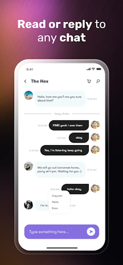 Gone are the days of constantly jumping between apps to reply to messages. With Stealthify, you can respond to your chats directly from within the app, Auto WA Message Reply mode saving you time and streamlining your communication process.