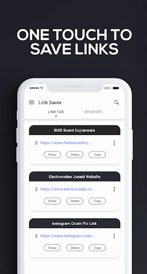 Share them with your friends and family through other apps. Save URLs is the simple app to store URLs / Links of Websites, Blogs, Apps, Games, Videos, Images, Documents and other resources on the World Wide Web.