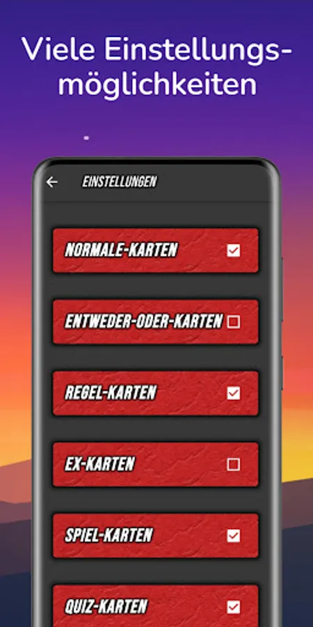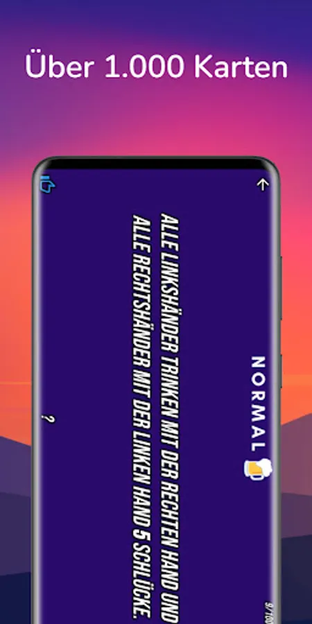 So far, drinking offers you two game modes and the possibility to adjust the drinking level yourself, so that you can enjoy the game at your own pace. You can also choose the number of cards or the playing time to play quick rounds or long game adventures. There's also a rating system to rate cards, and a back option if you clicked too quickly.