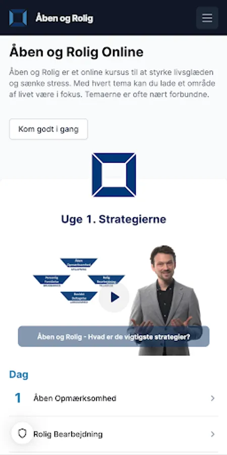 The course is based on the scientifically developed and well-proven program, Open and Calm. Open and Calm has been developed during a research project in collaboration with Rigshospitalet and the Benson-Henry Institute at Harvard University. Open and Calm is offered by the Mental Health Foundation.