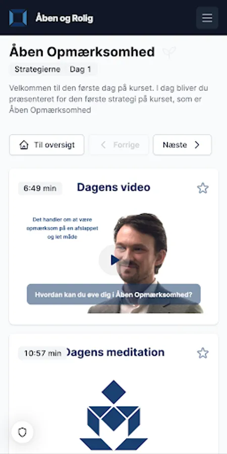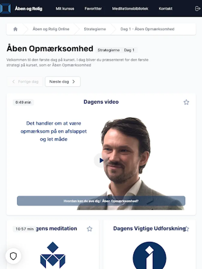 The course contains 20 sessions of 15-20 min. You will be guided with small videos, meditations and other tools.