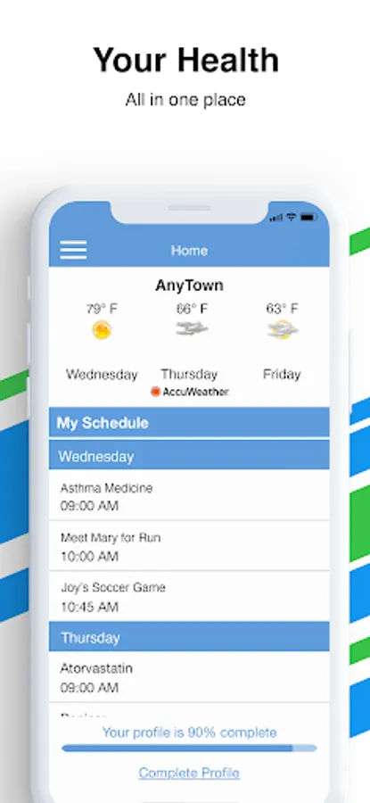 My Forever Health helps you stay on top of your medication schedule with proactive medication reminders, prescription refill notifications, and even reminders to make and attend doctor's appointments. Answer a few profile questions and receive customized reminders to schedule annual physicals, flu shots, mammograms, colonoscopies, and more all based on your medical history, gender, and age.