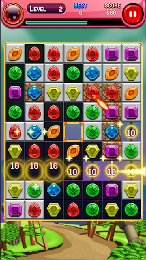 2: Match the jewels until the board transparency,the Jewels star will appear.