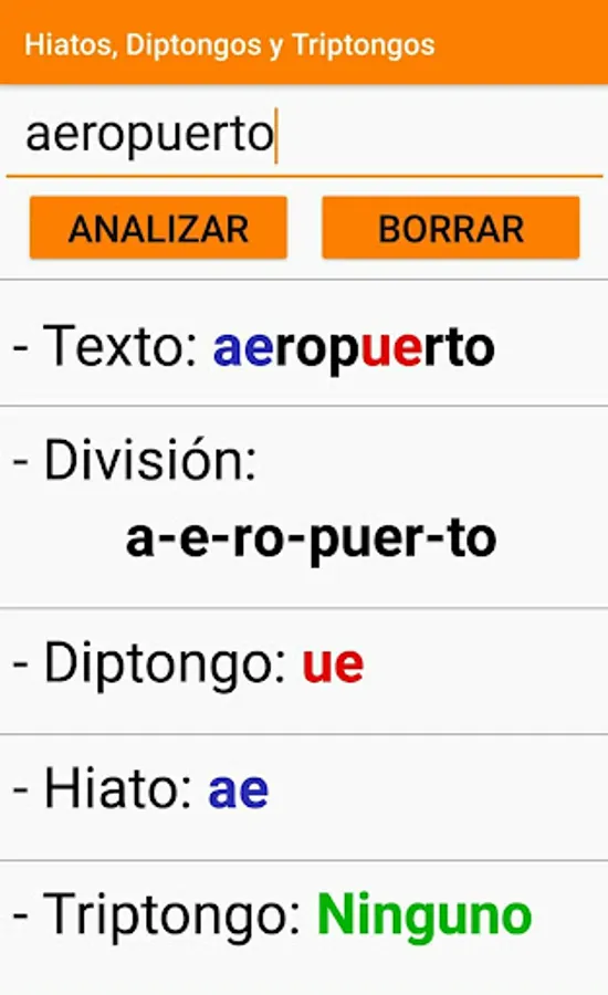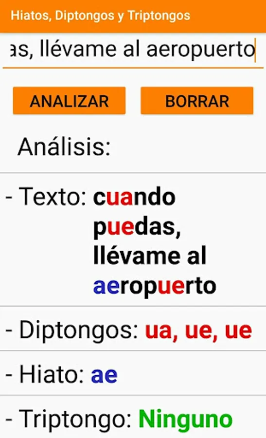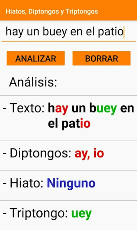 - Directly color the text of different colors to facilitate the encounter of diphthongs, hiatus and triptongos.