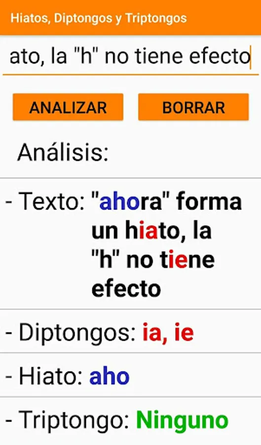 - Detects that the presence of the "h" between a diphthong or a hiatus does not alter its formation.