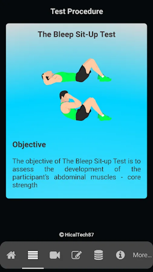 Users are given directions in the form of a text for carrying out The Bleep Sit-Up Test. In addition, this application is equipped with audio to carry out the test.