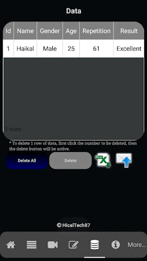 This application is equipped with a data storage feature through a local database that is stored in the application and can be exported to .csv format. In addition, it can be shared to e-mail, social media and messenger applications.