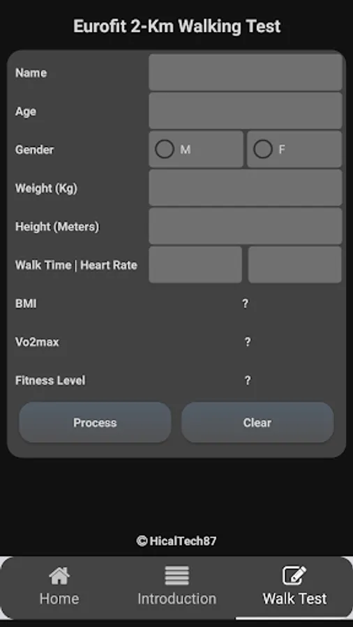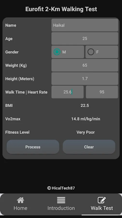 If all data has been entered in the available fields, then click the process button to see the fitness level status.