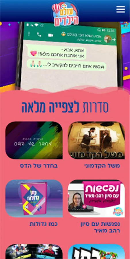 The educational and engaging children's app "Children's World" from Hidbrot, offers a huge variety of games, full-length movies, engaging series, full comic books, creations, nature and more