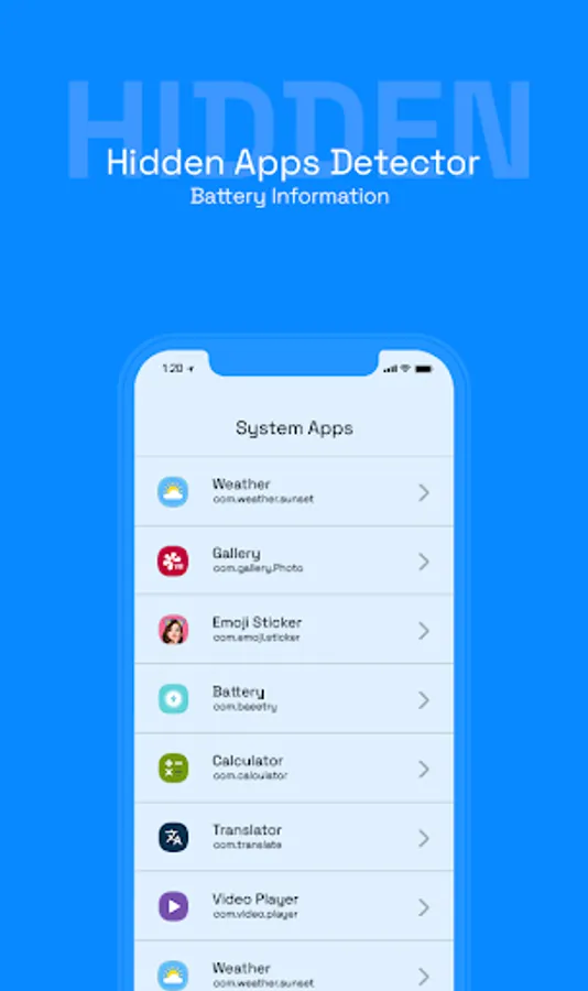 Hidden apps detector on my phone will find hidden apps and help you to boost your smartphone. this application is consist of some main feature like detection of hidden apps in android phone and user install applications info battery status and battery information like source of charging battery health