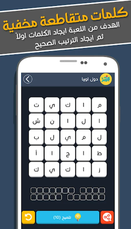 The hidden crossword game is one of the best intelligence and thinking games, as it is a new version of the crossword game with a new idea and a new way. In this game, you are required to guess the required words according to the number of letters and according to the classification in each stage, such as the stage of country names, car logos, or geography, and so on in each stage there are a number of words that you have to guess and find.