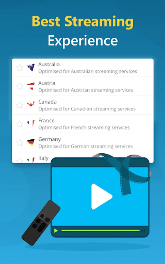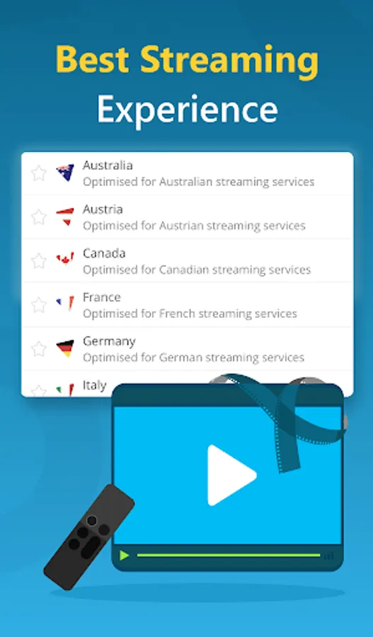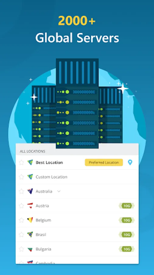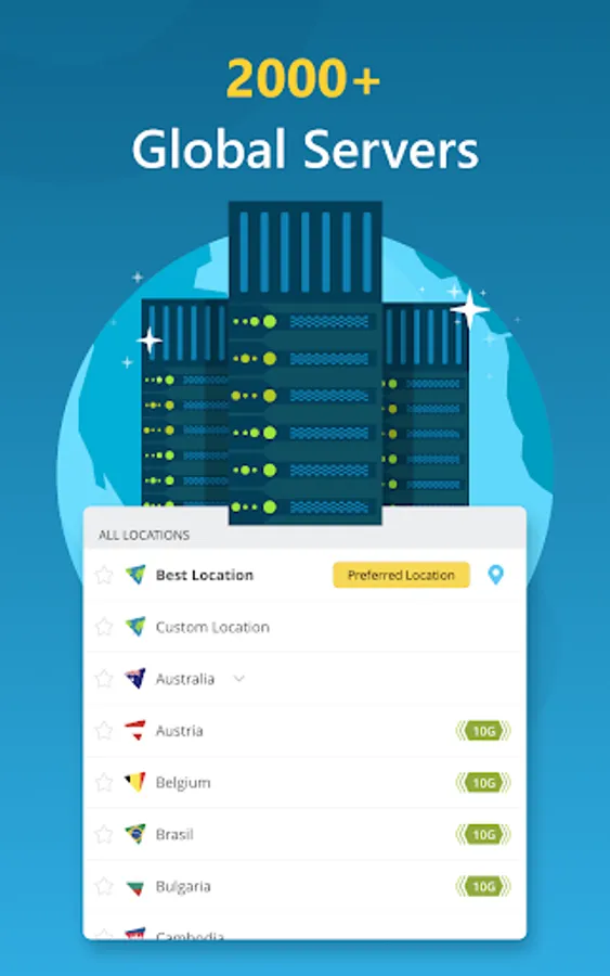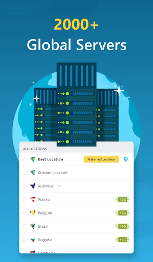 The app supports WireGuard®, IKEv2, and OpenVPN protocol which makes your data encryption stable and ensures a smooth connection. WireGuard secures an amazingly fast connection allowing you to enjoy videos and games at speeds you never imagined.