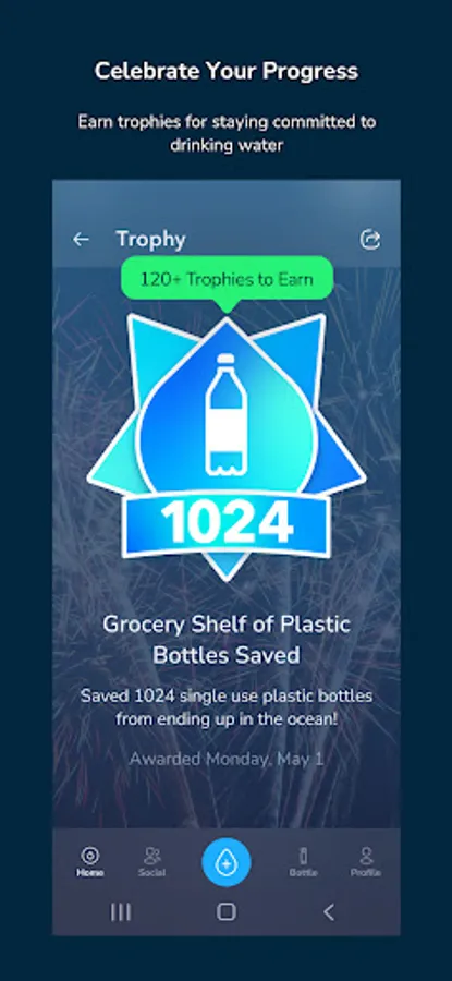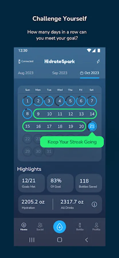 HidrateSpark uses psychology to help you drink more water and create a lasting hydration habit. It takes the guesswork out of how much water you should drink by calculating a personalized daily goal for you. Stay on track with simple beverage tracking, helpful reminders throughout the day to take a sip, and trophies to celebrate your progress.
