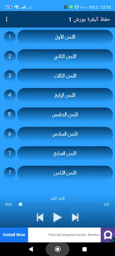 This application will help you memorize Surat Al-Baqara with a workshop narration without the Internet. The first party will repeat the verses