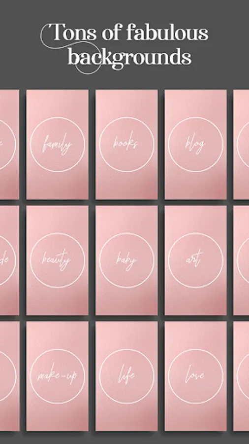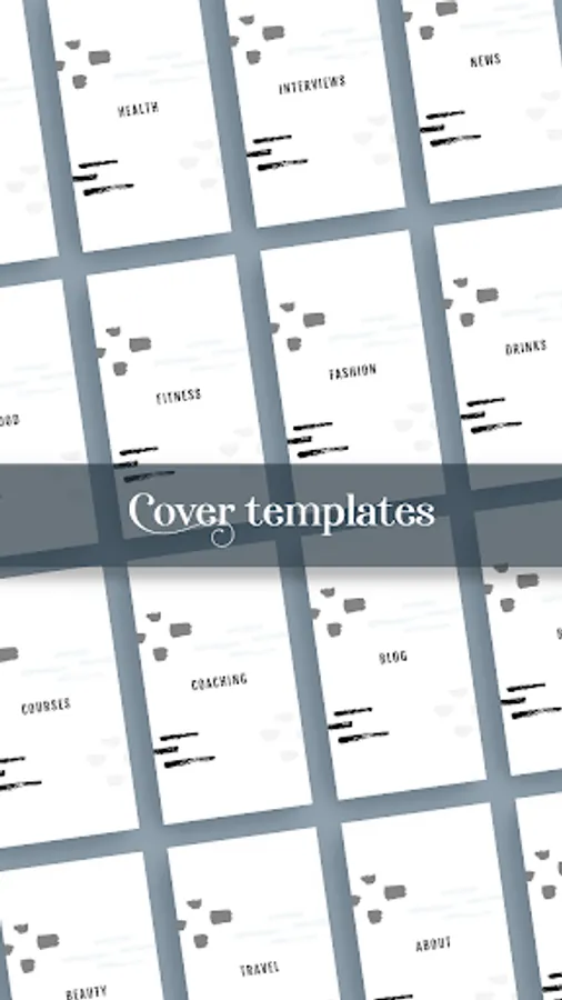 It's all about the first impression. Add a “story cover” to your photo story free and create an eye-catching “first page”. Thanks to this ♡”Highlight Cover Maker for Story”♡, you can unfold creative stories that begin with story highlight icons. Once you upload all the pictures you want to include in your story ig, choose the story cover page template that reflects your story art best and edit it with a piece of text. Turn special moments into permanent highlights! Enrich your profile with a stunning story featuring cover page background images. Discover the secret to the perfect stories. Cover icons are the answer. A gorgeous story cover design will draw everyone's attention. This highlight maker will help you become authentic. A story without a story highlight icon is rather incomplete. Download the ig story highlight cover maker and do it right.