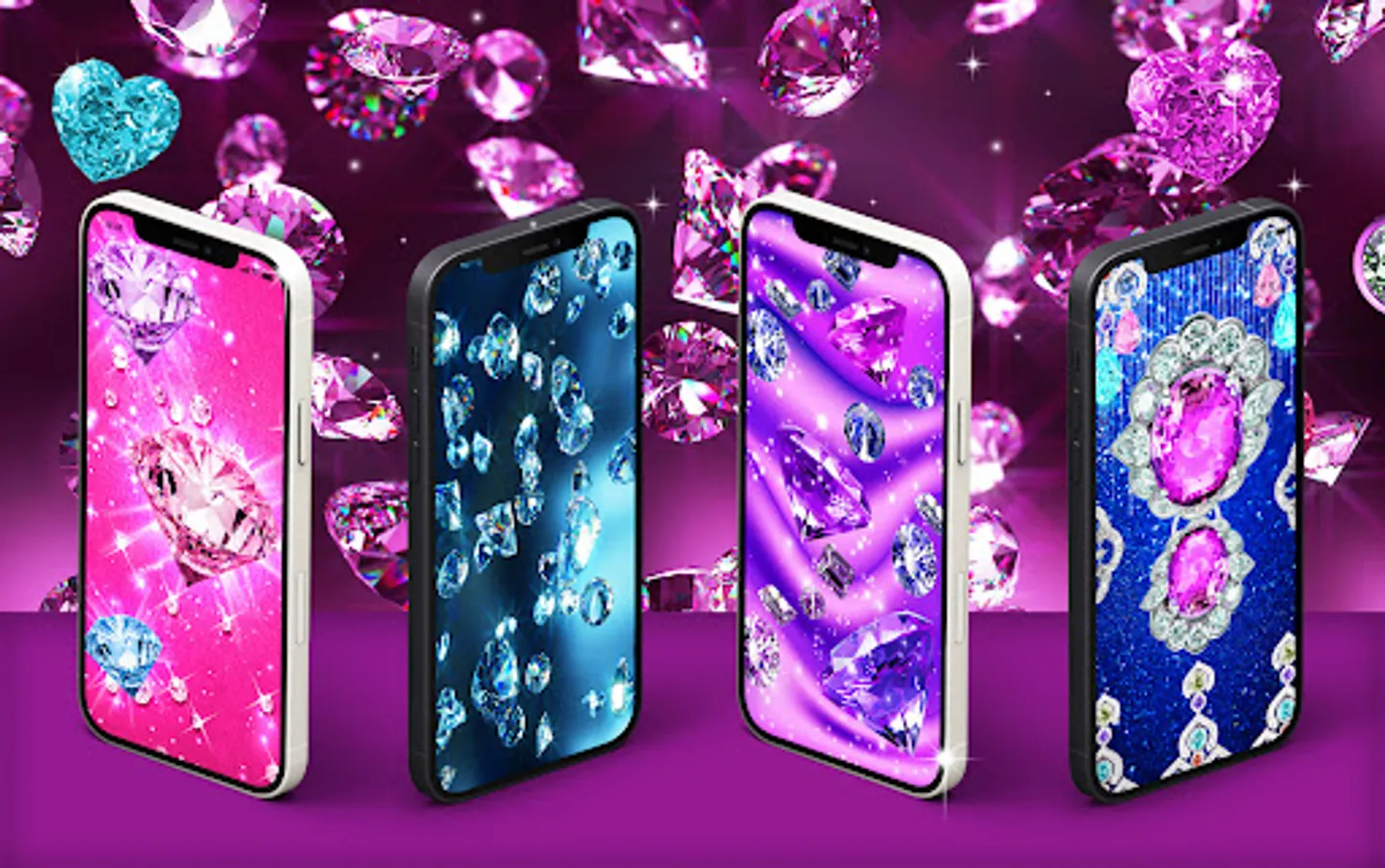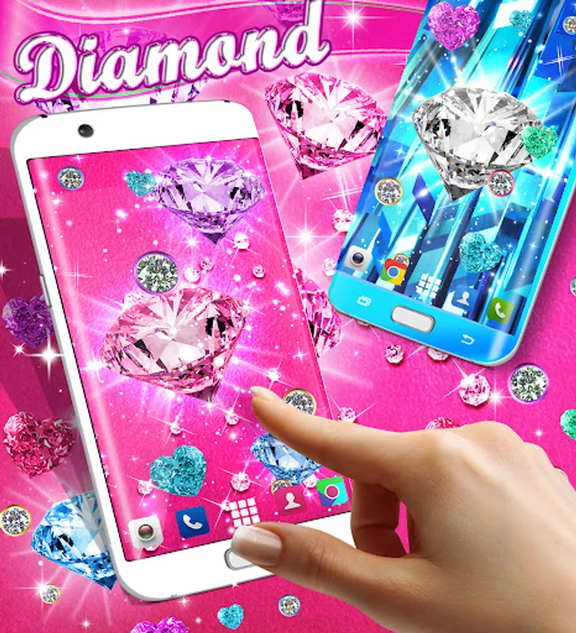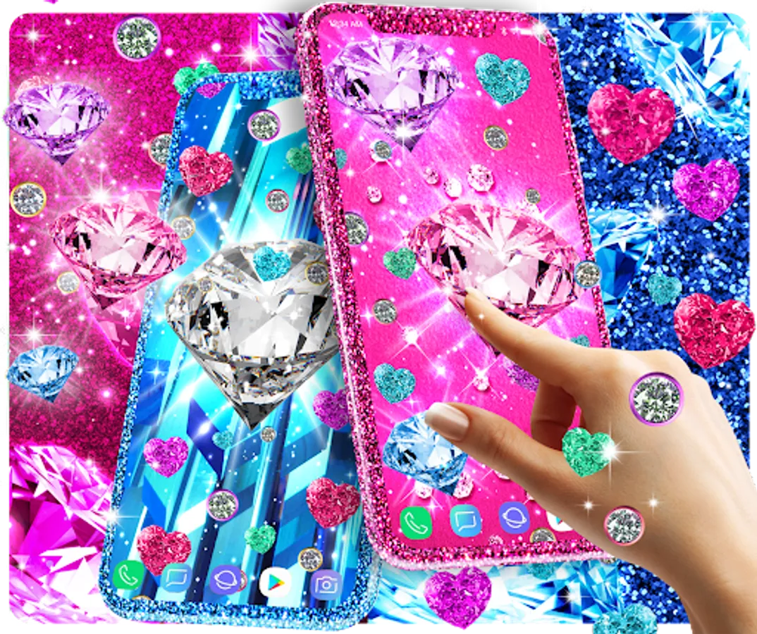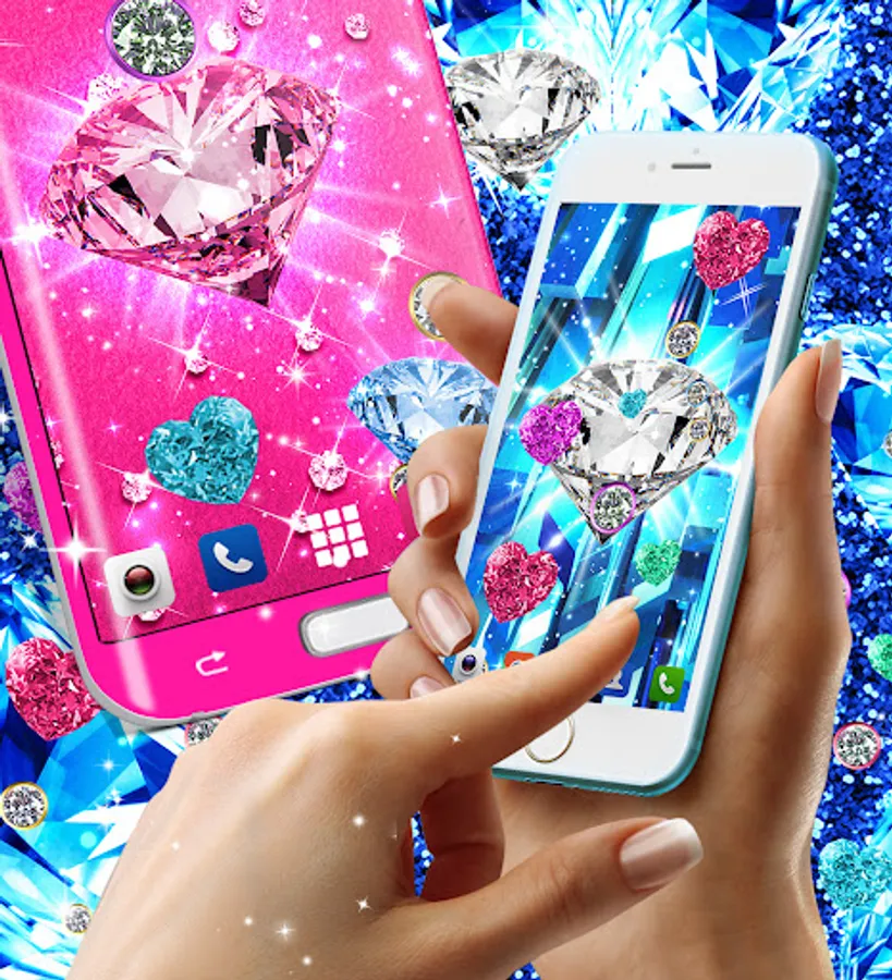 Amazing live wallpaper with glittery diamonds. High quality sparkly elements that float over the HD wallpapers with diamonds and diamond hearts.