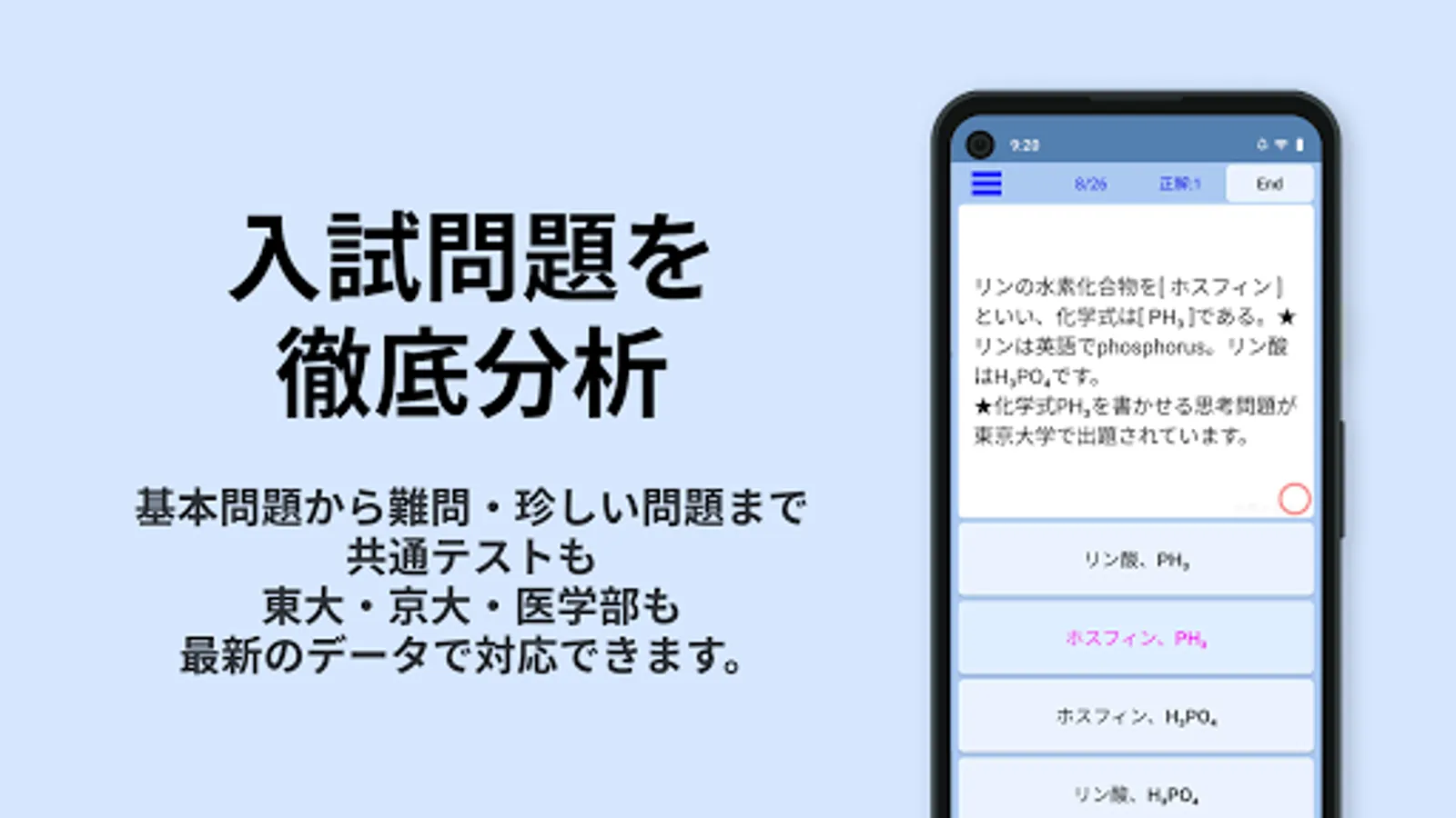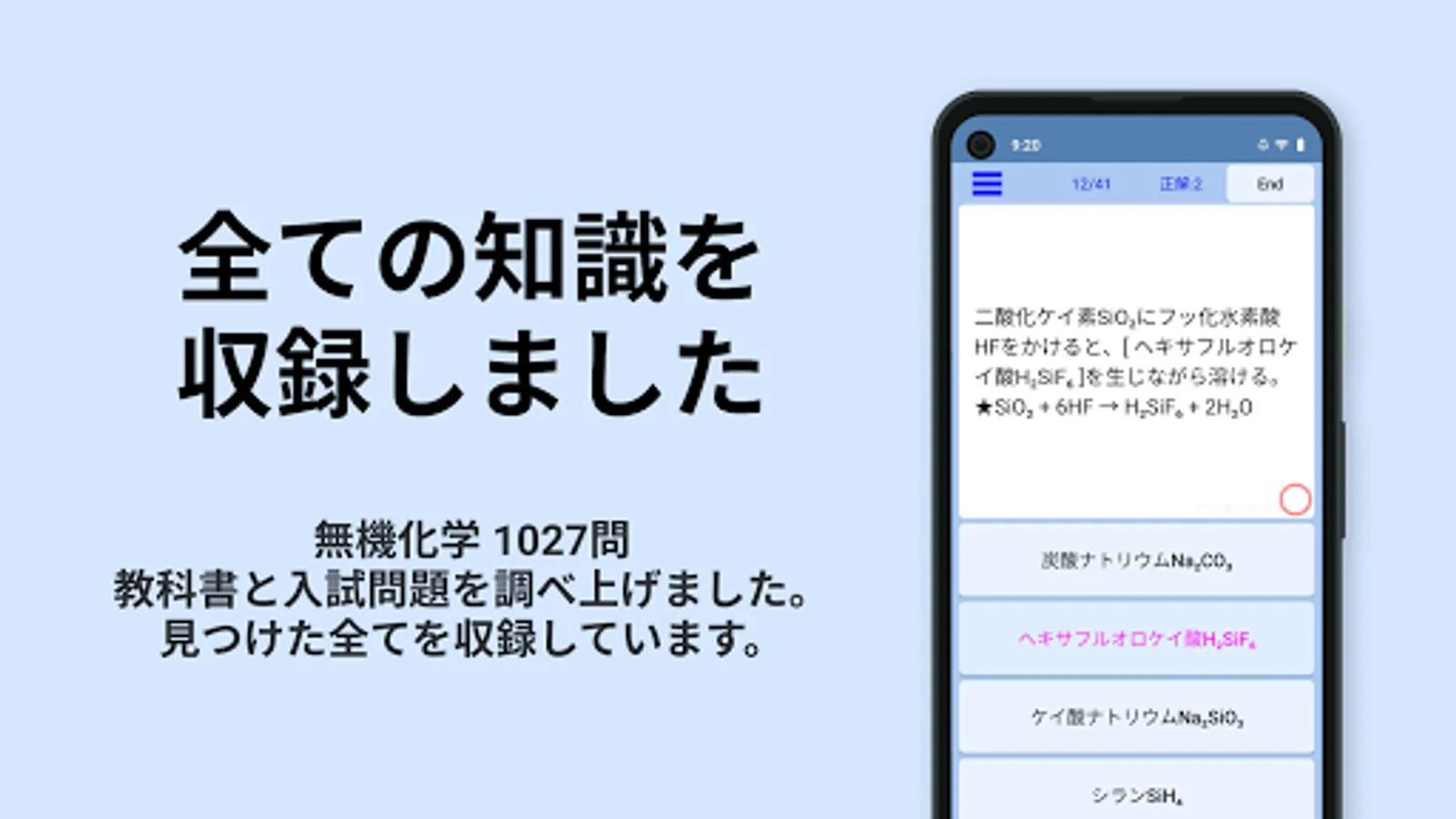 For high school chemistry and college entrance exams. The knowledge of inorganic chemistry has been made into a question-and-answer format and a vacant space filling question format.