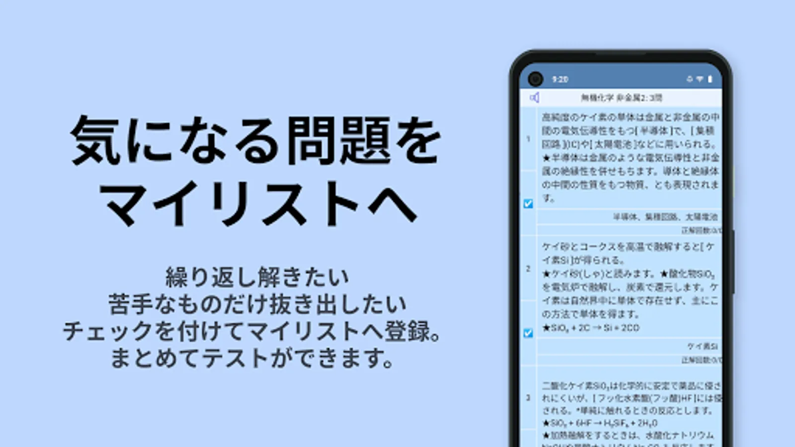 A list is created for each menu page. From any screen after the test result, you can select it with the Check button and add it to My List. You can reinforce your weaknesses by listing what you want to remember and focusing on it.