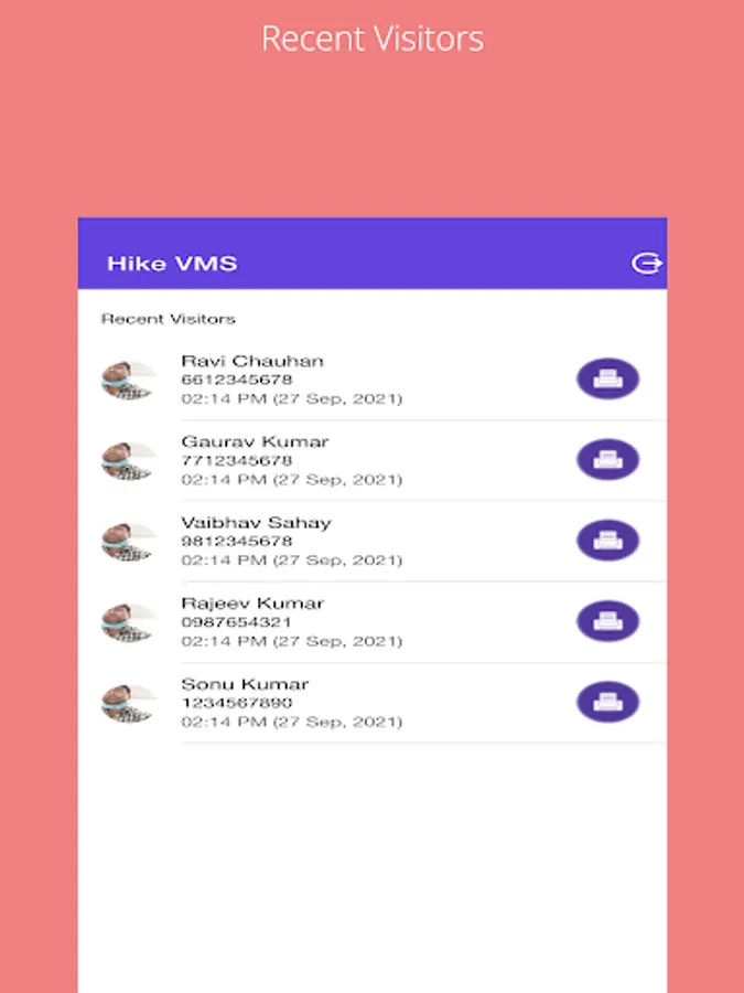 HikeVMS is an product of HikeAutomation which facilitates guards or supervisors to generate Visitors details receipt and take a printout with Bluetooth printers.