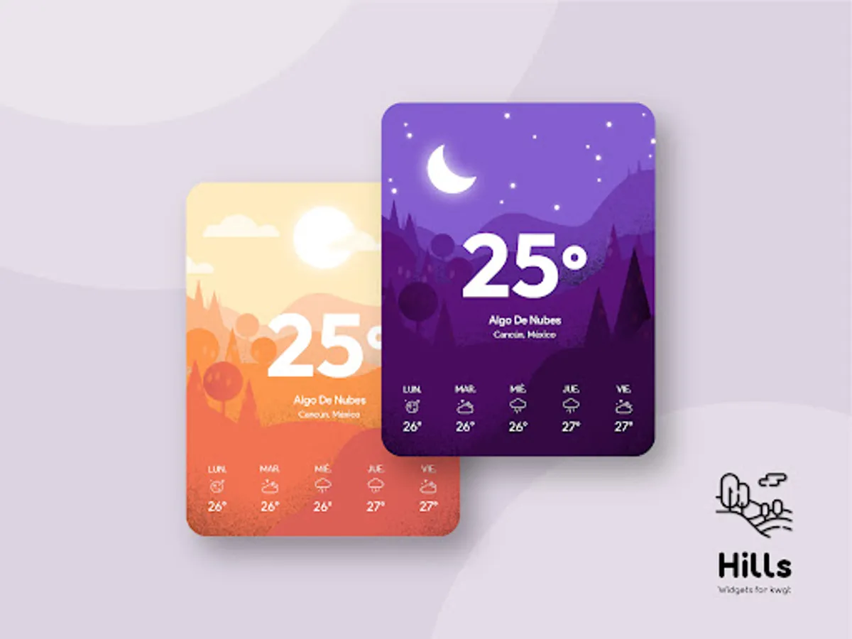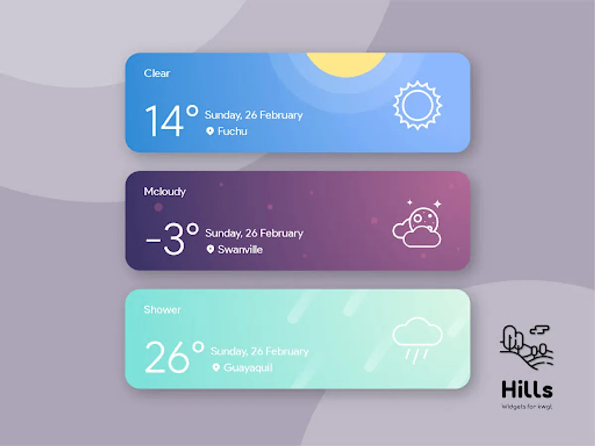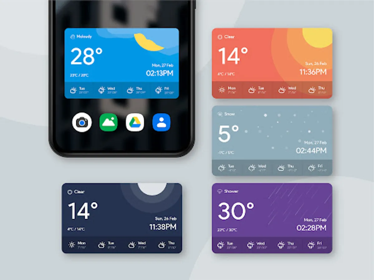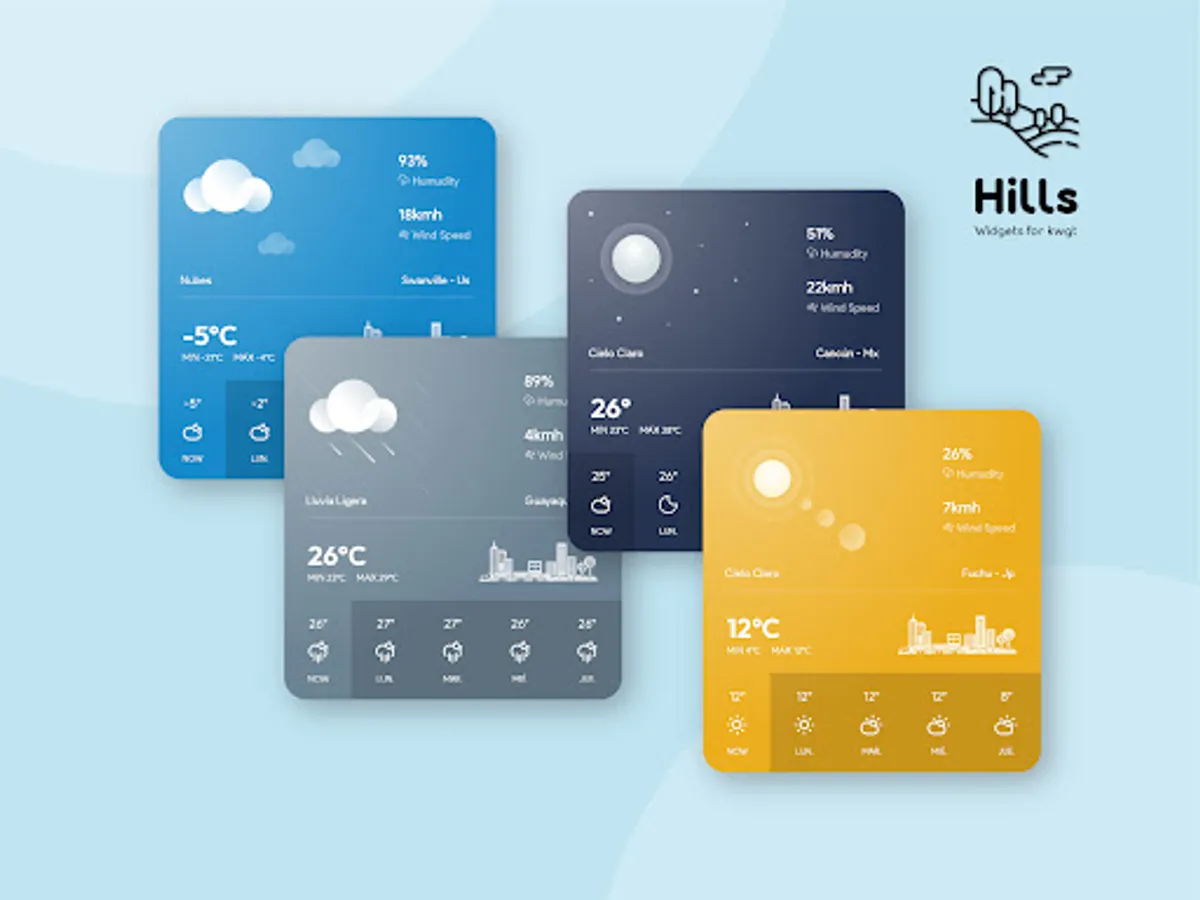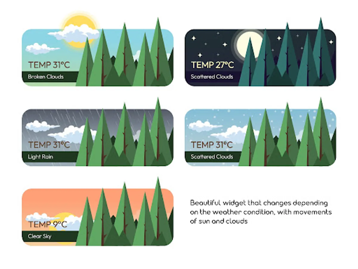 Beautiful pack of weather widgets adaptable to the weather of the day with different colors and styles