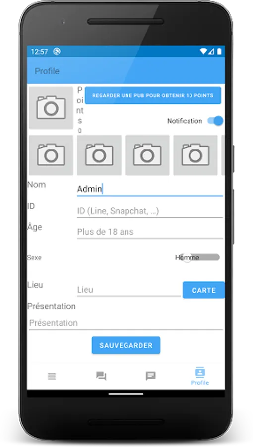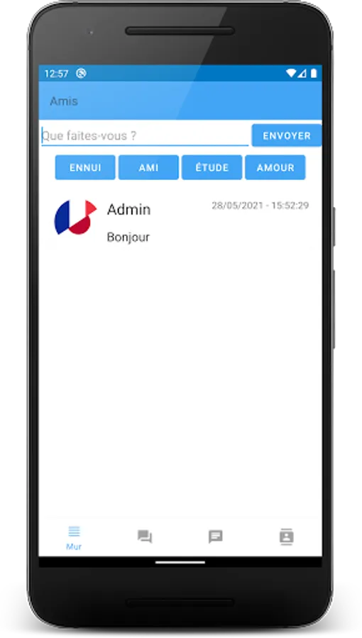 Anyone can post a message on a public wall, and on this same wall search for people of interest and send them a message (text, image, voice and stickers).