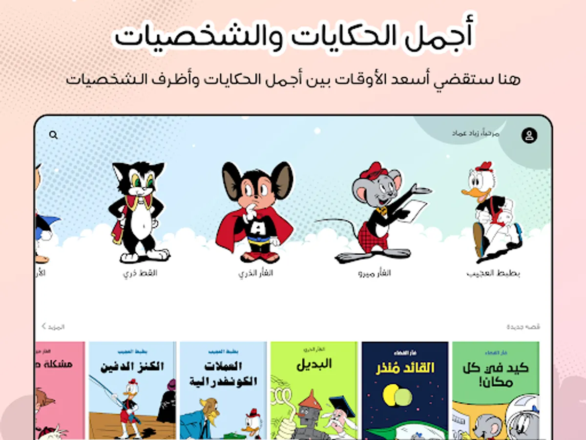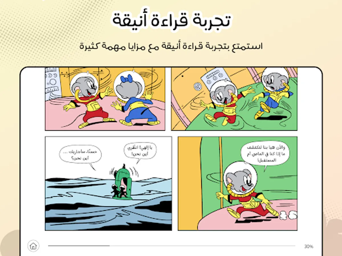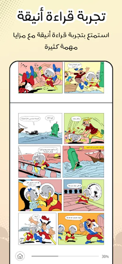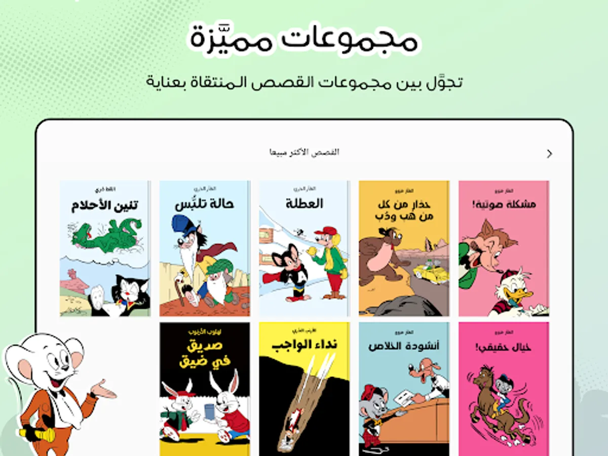 Now... the largest Arab library of comics in your hands! We will live with our heroes their comic stories and adventures that will draw a smile on the face of the old before the young. Together, we will laugh at the anecdotes of the wondrous Bat and the wise boy, the jokes of the mouse Miro and the bunny's bunny, and we will fight with our superheroes their battles against the villains. This application is a real treasure for all comics lovers in the Arab world. Attractive, high-resolution graphics, and interesting dialogue mixed with light-heartedness, will provide the reader with intense doses of humor and fun. Download the application now and enjoy a unique elegant experience.