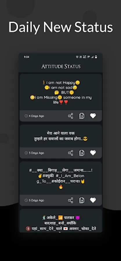 🤩We are updating our App Attitude Status and Shayari on Daily Basis, where you'll get Daily New latest status for your WhatsApp Status, Facebook Status, Quotes, and other Love and Funny Shayari, and many more.🤙🏻
