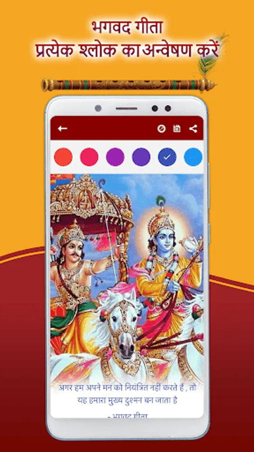 This comprehensive Bhagwat Geeta app features slokas, commentary, Gita essence, Krishna's birth, slokas, and more. Experience the festival calendar, share slokas, track progress, and generate greeting cards with quotes.